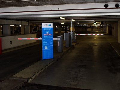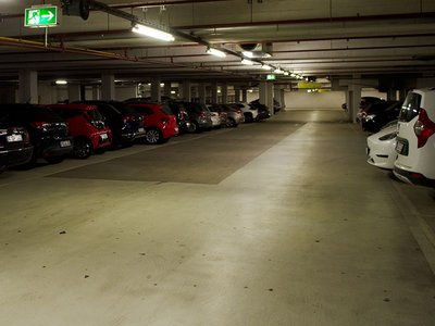 Car park "Grünhof". You are parking near the police department and MniMal market.