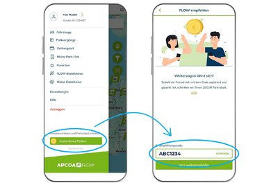 Jetzt Freunde werben APCOA FLOW weiterempfehlen und 10 € Park-Rabatt* für beide sichern!